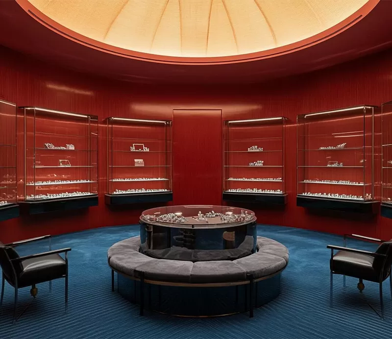 Focus on customer experience and may feature technological elements such as interactive screens and virtual reality (VR) devices. Customers can view detailed jewelry information and a 360-degree display on the screen, simulating what it would feel like to wear the jewelry. This type of jewelry cabinet is suitable for high-end jewelry experience stores, brand product launches, and other settings.