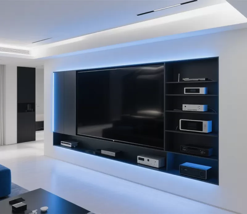 Case 1: The owner of a modern villa's living room desired a high-tech TV wall. We customized an oversized stainless steel TV alcove in matte black stainless steel with a hidden LED light strip. Not only does the alcove perfectly accommodate various electronic devices, its minimalist lines and cool metallic finish complement the overall living room style, instantly becoming the focal point of the space and significantly enhancing the owner's viewing experience.