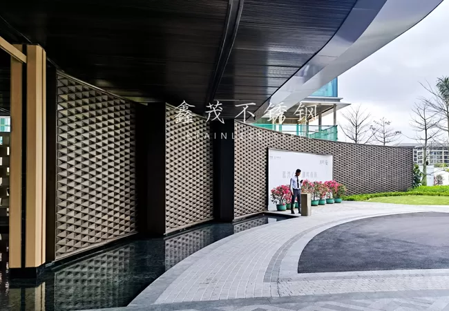 Located in Cangzhou, Hebei, China, the Cangzhou Hotel is a premium hospitality project where architectural design meets functional luxury. Our bespoke stainless steel products play a vital role in enhancing the aesthetic appeal and structural quality of the hotel’s interior. The scope of work includes custom stainless steel metal screens for the hotel lobby, premium stainless steel background walls, and tailor-made stainless steel bar counters that add a modern touch to the water bar area.