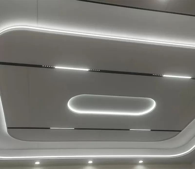 The Apple Sand stainless steel honeycomb panel arc floating ceiling utilizes a delicate sandblasting process to create a matte metallic texture. 304 stainless steel and a honeycomb aluminum core create a three-dimensional curved surface, and the lightweight structure achieves an unsupported floating effect. The smooth curves created by CNC trimming eliminate the sense of oppression in the space. The Apple Sand texture diffusely reflects light, creating a soft halo. In atriums, exhibition halls, and other settings, the cold, hard metal becomes a cloud-like ribbon, and the minimalist arcs of light outline the flowing rhythm of the commercial space.