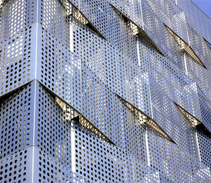 Perforated stainless steel wall cladding